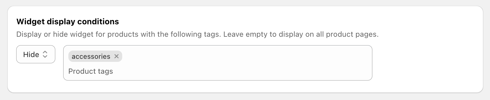 Display or hide widget for products with the specific tags. Leave empty to display on all product pages.