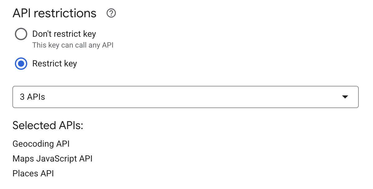 - Google Places API key. The API key is required for Google address lookup. Learn more where to get API Key from this user guide by Google.